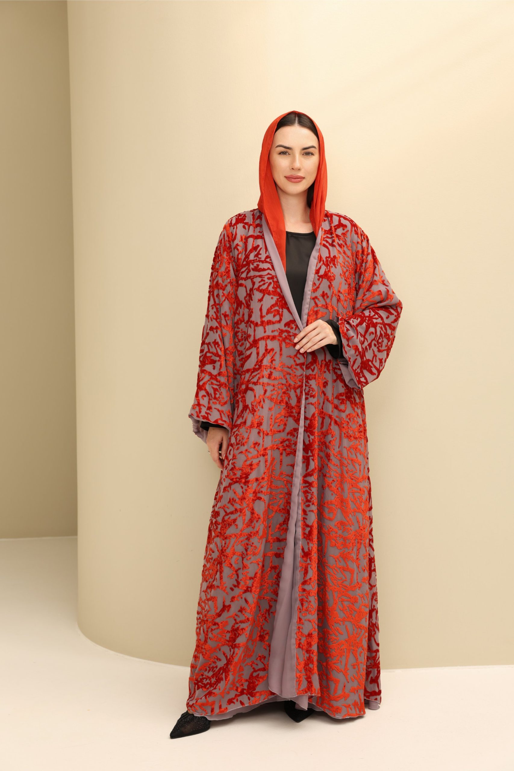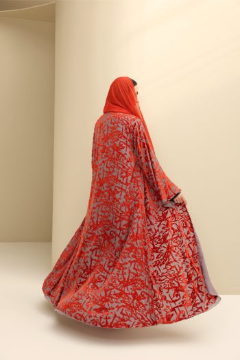 Bold yet refined, this abaya is perfect for weddings, galas, or special events. Its texture and striking colours blend contemporary flair with timeless luxury, ideal for a confident, elegant statement.