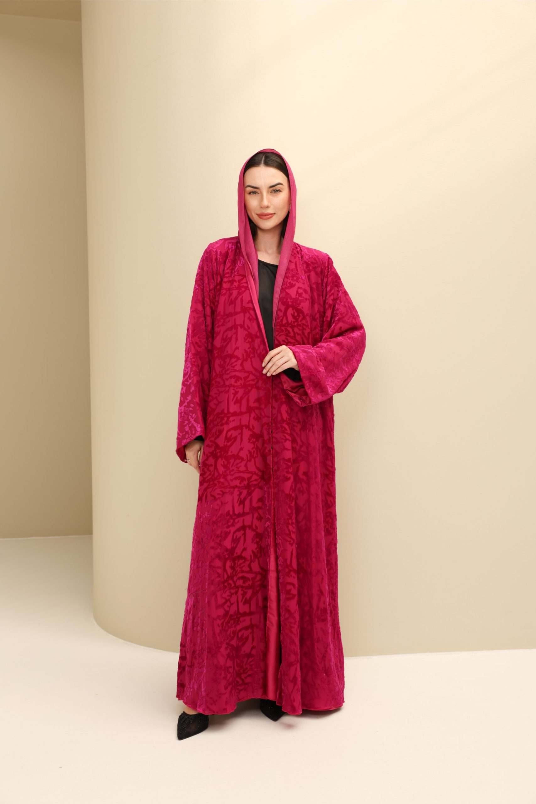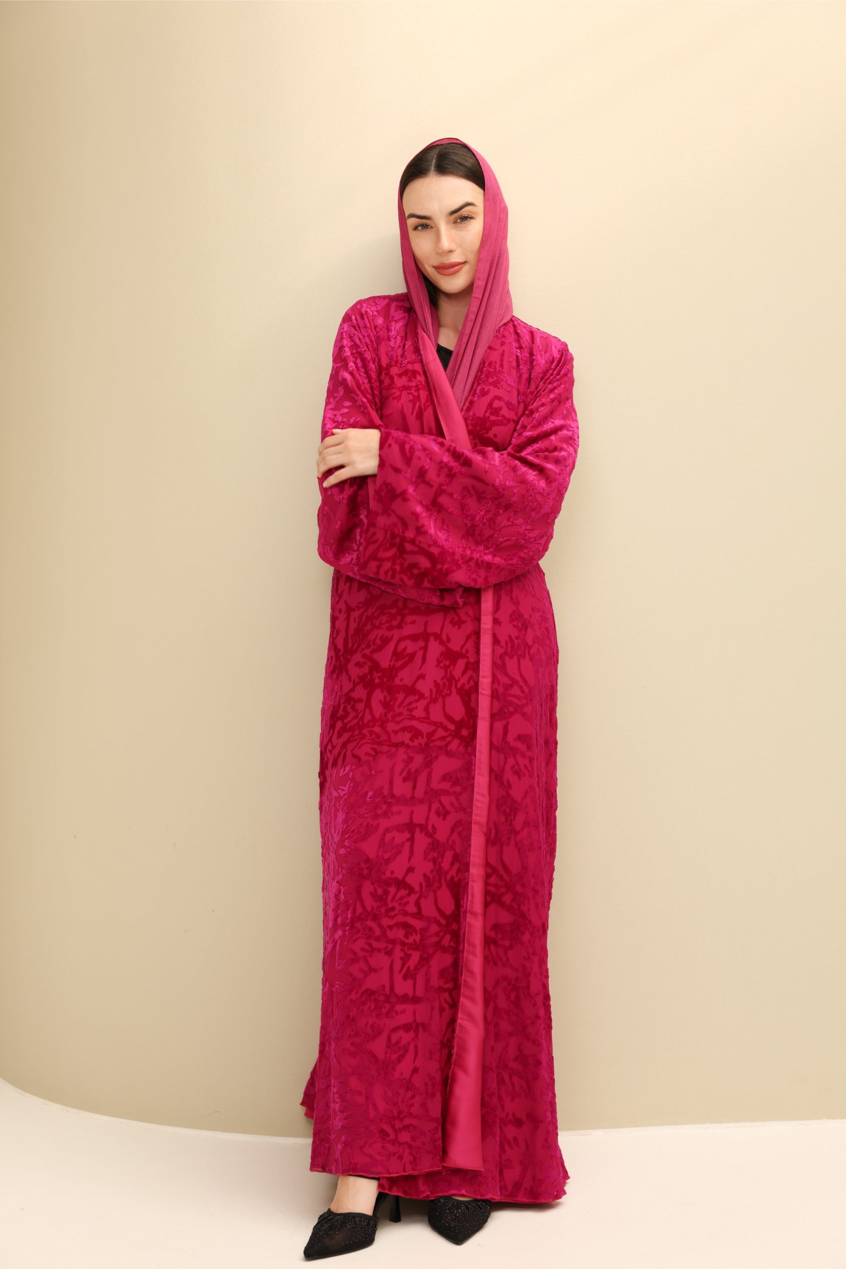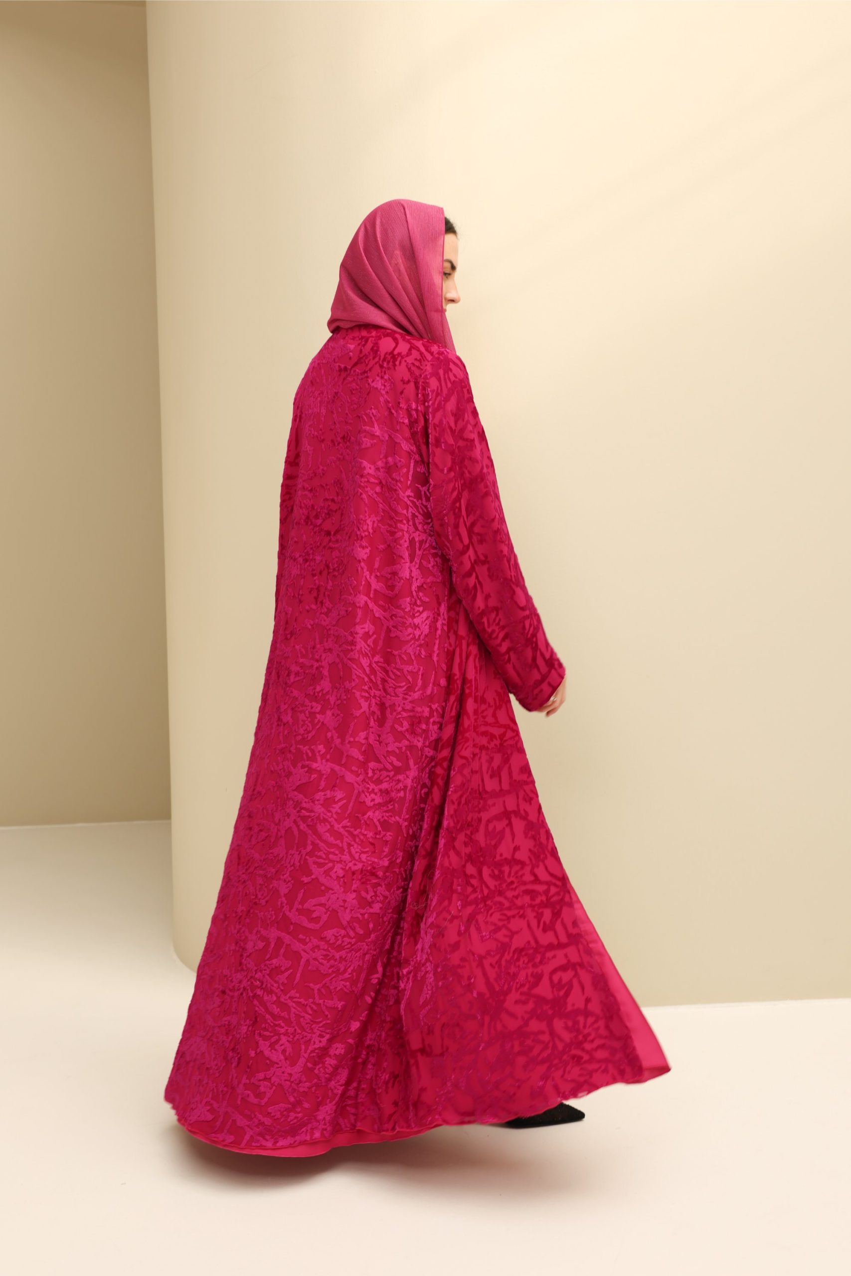 Chic and luxurious, this abaya is perfect for weddings, galas, or celebrations. Its vibrant colour and textured brass make it a bold, sophisticated statement, blending modern flair with timeless grace.
